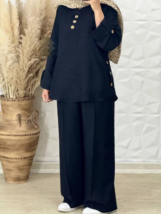 ست تیشرت و شلوار دکمه بالا