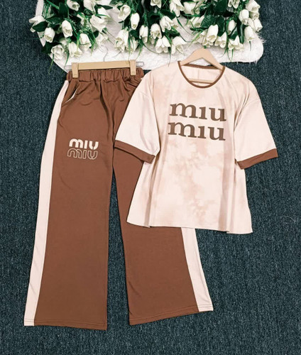 ناموجودست دو تیکه (تیشرت + شلوار)Miu Miu ✨
