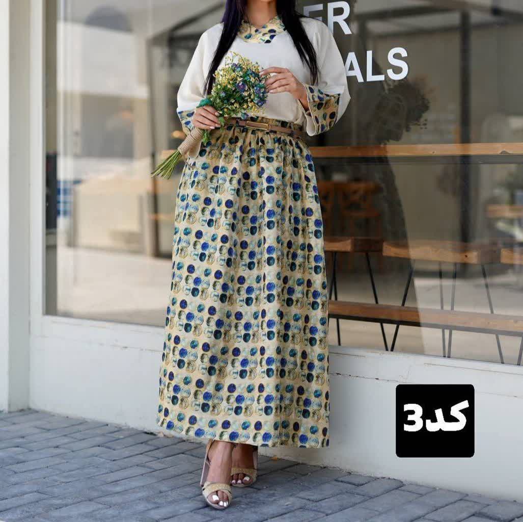 👚نام : ست سه تیکه نگارین 👗🌹قد شومیز 63 🌹دورسینه 124 🌹قد استین از یقه 62 🌹قد دامن 90 ❌3 تیکه شامل شومیز و دامن و کیف ❌ 🧵جنس : جنس شومیز لینن ترک طرح دار دامن لینن هندی 🖌 رنگ بندی : کد1 - کد2 - کد3 - کد4 - ⚜️ سایز ها : 38/46 -