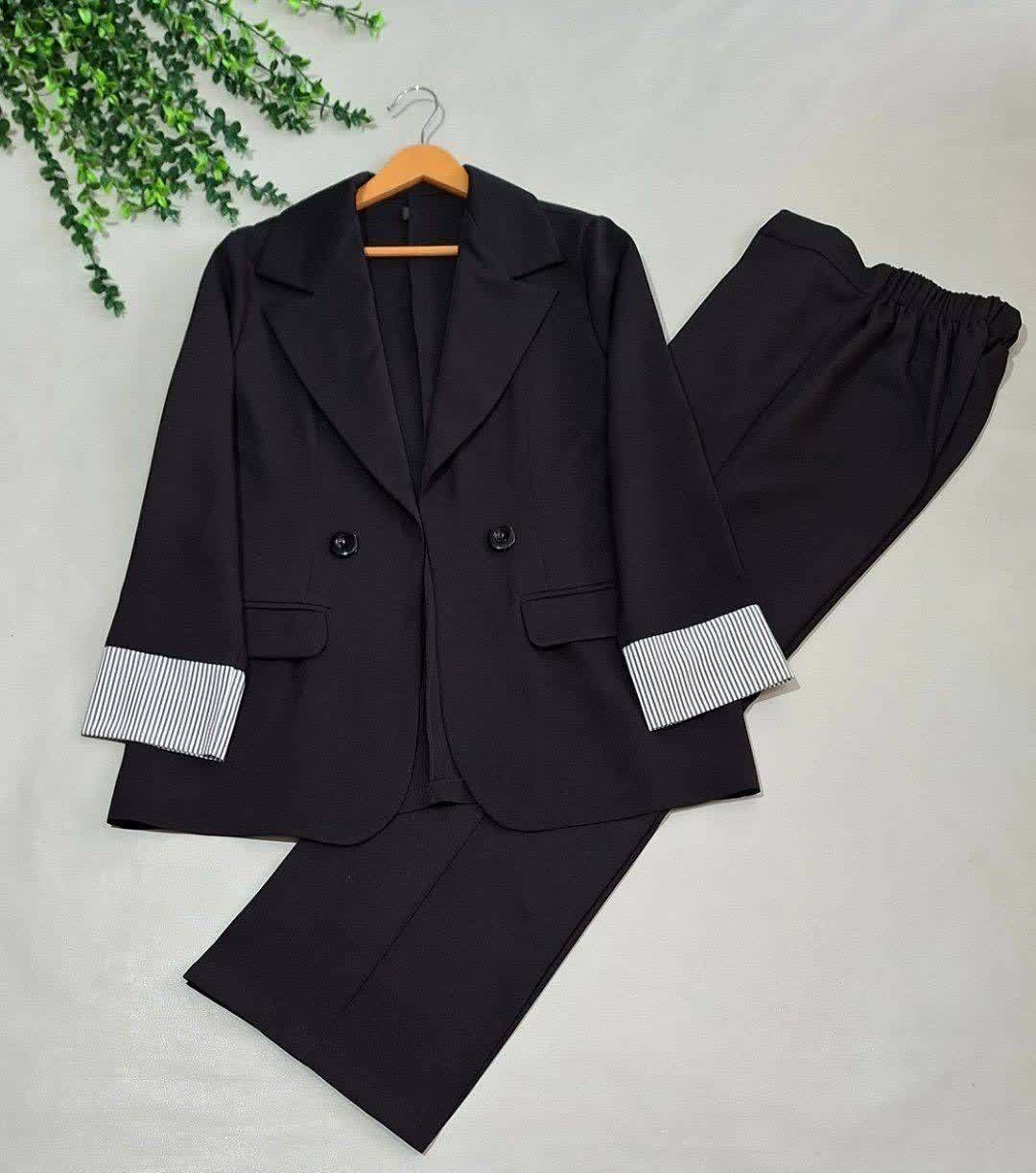 👚نام : کت و شلوار هستی 👗🌹قد کت حدودا 75 🌹قد شلوار حدودا 105 🌹قد استین 59 🌹سایز1: دورسینه 102 دور بازو 36 دورران 60 🌹سایز 2: دورسینه 106 دور بازو 39 دور ران 66 🧵جنس : مازراتی نخ توئیست درجه یک 🖌 رنگ بندی : مشکی - ⚜️ سایز ها : 38/42 - 44/46 - 1 - 2 -