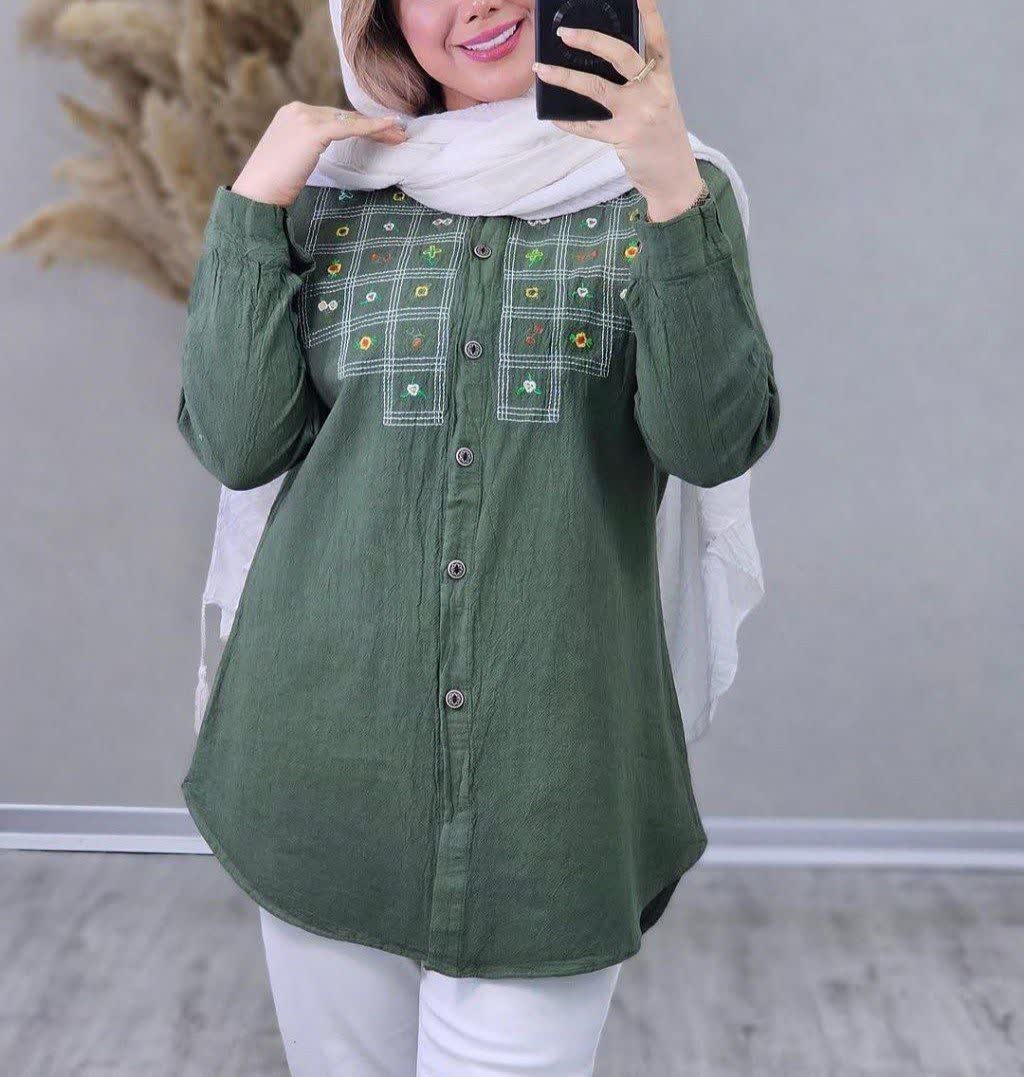دستهبندی: زنانهسایزبندی: فری سایز ۳۶ تا ۴۶قد لباس: حدودا 85دور سینه: 106دور باسن: 116قد آستین : از یقه 73دور بازو : ۴۲نمایش بیشتر