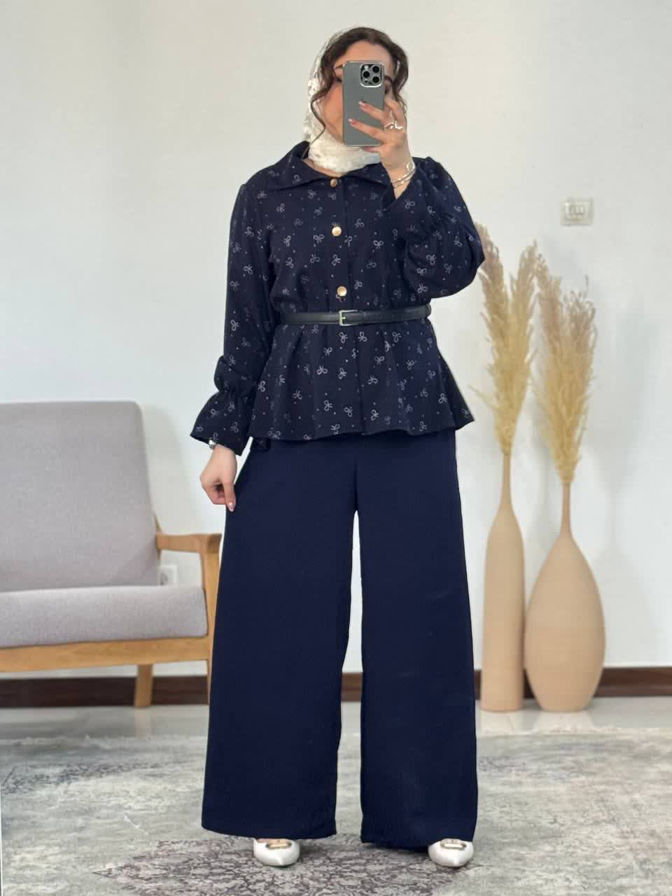 دستهبندی: زنانهقد شومیز: حدودا ۷۵قد آستین: حدودا ۶۰دورسینه: حدودا 110قد شلوار: 104دور باسن : تا ۱۸۸دور کمر : از ۷۰ تا ۱۱۰ ساپورت میشودشلوار : پشت کمر کش کار شده و لخت و عالی می ایسته!جنس شومیز : آیوا ینزی نقره کوب پاپیونیجنس شلوار : ینری آیوا سادهنمایش بیشتر