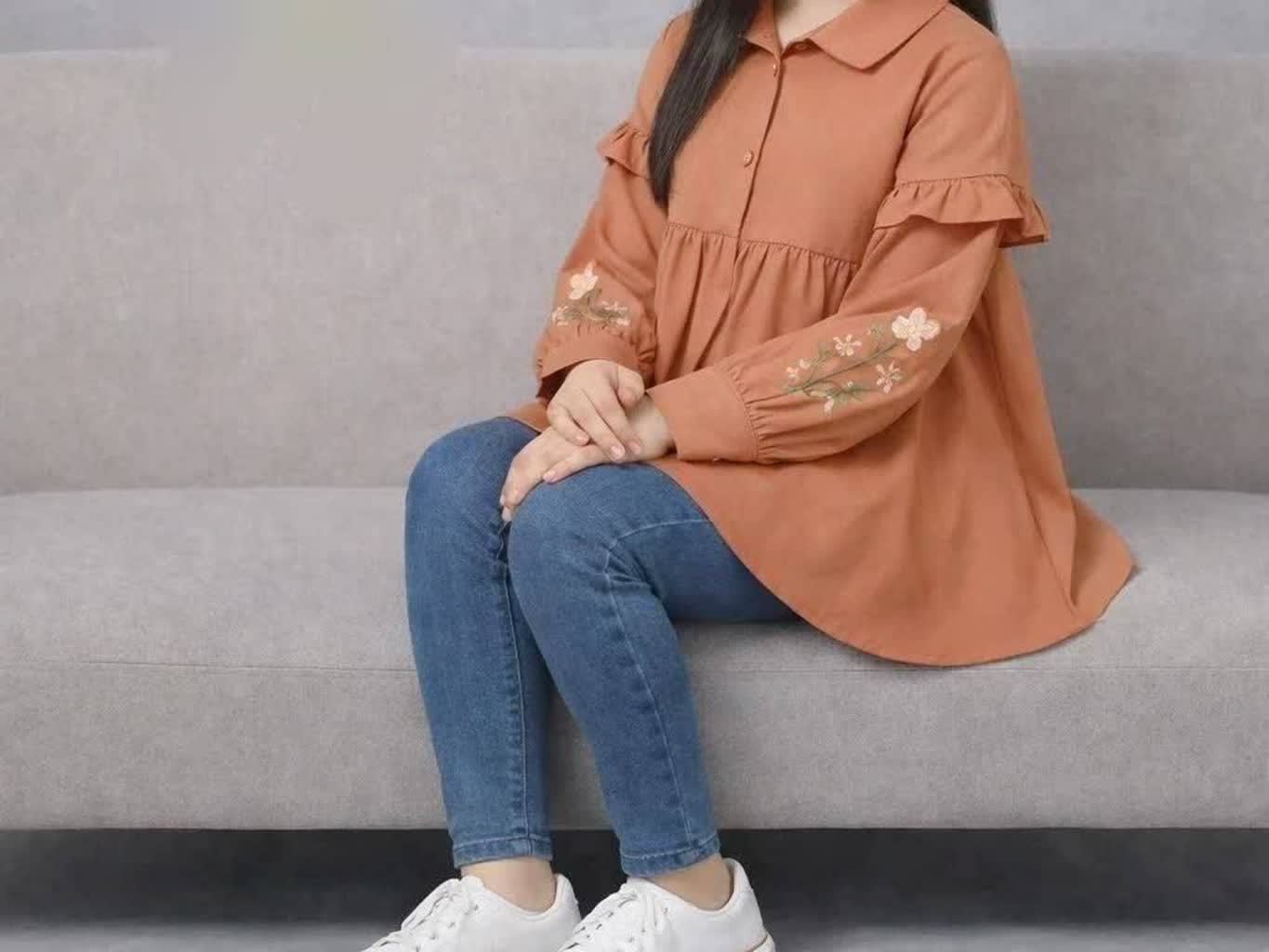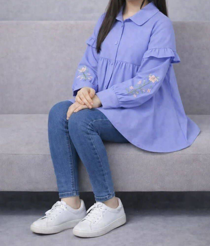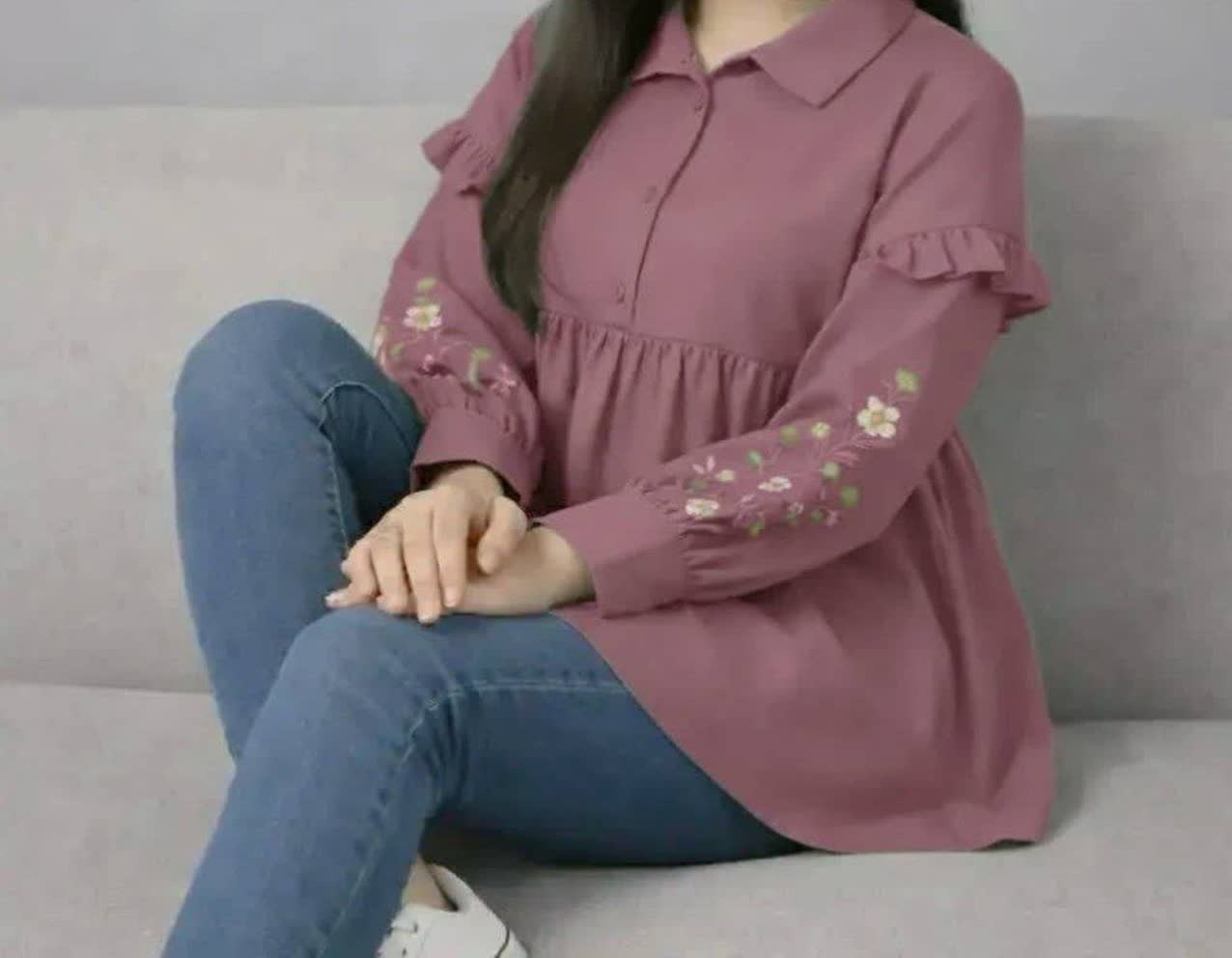 🔸 جنس کرپ الیزه وارداتی درجه یک گرم بالا ، یقه انگلیسی ، بالاتنه و سر آستین دکمه میخوره ، گلدوزی ظریف و پرتراکم ،استین رگلان ، قواره آزاد ، تنپوش خیلی شیک و زیبا
